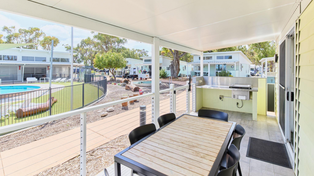 Our Three Bedroom Villa accommodation is a pool view villa with plenty to offer. As part of our collection of popular family villas, this option is ideal for a large family or a group of friends. There is a queen bed, two single beds and two single bunk beds for up to eight guests. Accommodation facilities include air-conditioning, a full kitchen with fridge, stovetop and microwave, a bathroom and ensuite, lounge and dining area with a TV and DVD player, plus a veranda with outdoor dining and BBQ facilities. Surrounding the pool are plenty of areas to enjoy, including our BBQ facilities, recreation room and nature playground. You’ll be a short stroll away from access to the beach too. Please note, this villa is not pet-friendly.