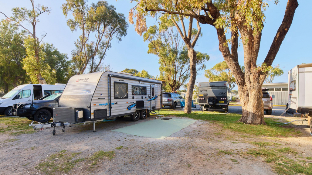 These Powered Sites are set on firm ground, some with an awning mat, perfect for caravans, motorhomes, camper trailers, campervans, or tents. Each site has access to 240 volts/15-amp power and fresh water. They do not feature sullage, but you can access a dump point on site. Our camping areas enjoy easy access to our modern shared facilities, including the pool, camp kitchen, shared amenities block, recreation room and much more. Your four-legged friends are welcome to stay with you, a maximum of two dogs are allowed per site. Please note pets must are not to be left unsupervised and there are some shared areas pets are not allowed.